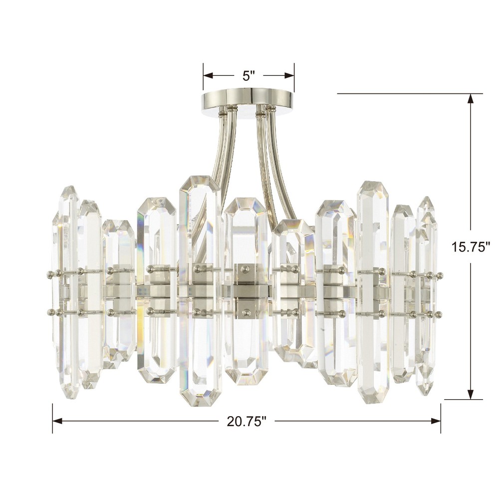 The Bolton Collection exudes glamour and luxury when placed as a focal point in the room. The varying sized faceted cut crystal panels are secured to a floating steel frame. The unique crystal prisms reflect beautiful light that creates an endless sparkle that elegantly blend with many home décor styles.